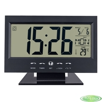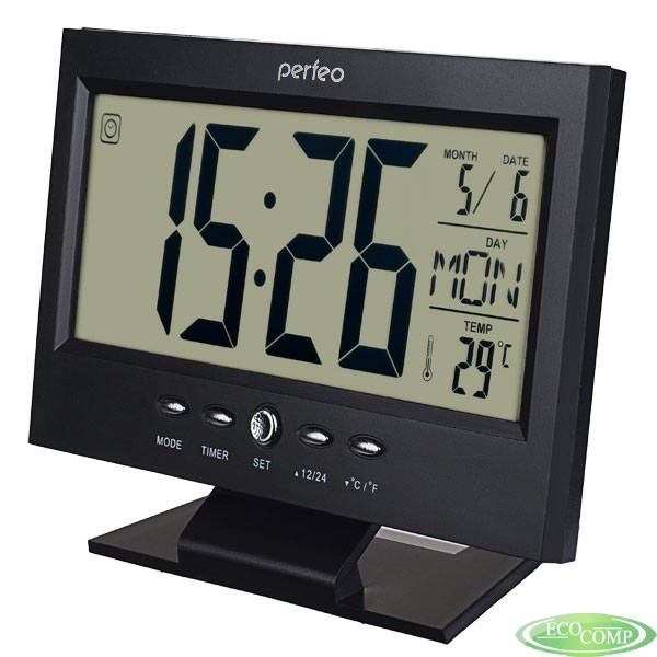 На монохромном дисплее одновременно отображаются два времени, дата, день недели и температура. Встроенный будильник имеет функцию повтора. Можно выбрать из восьми мелодий будильника. Функция таймера. Включение подсветки дисплея хлопком