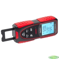 выполняет быстрое сложение и вычитание, а так же производит автоматическое вычисление площади и объема. Для возможности расчета недоступных для прямого измерения отрезков модель оснащена функцией вычисления расстояния между двумя точками по геометрическим формулам Пифагора. Откидная скоба поможет произвести точные измерения из углов и щелей.