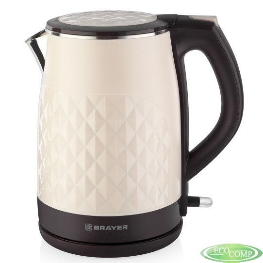 BRAYER 1043BR-WH Чайник электрический, 2200 Вт, 1,5 л, нерж +покрытие Cool Touch, беж.