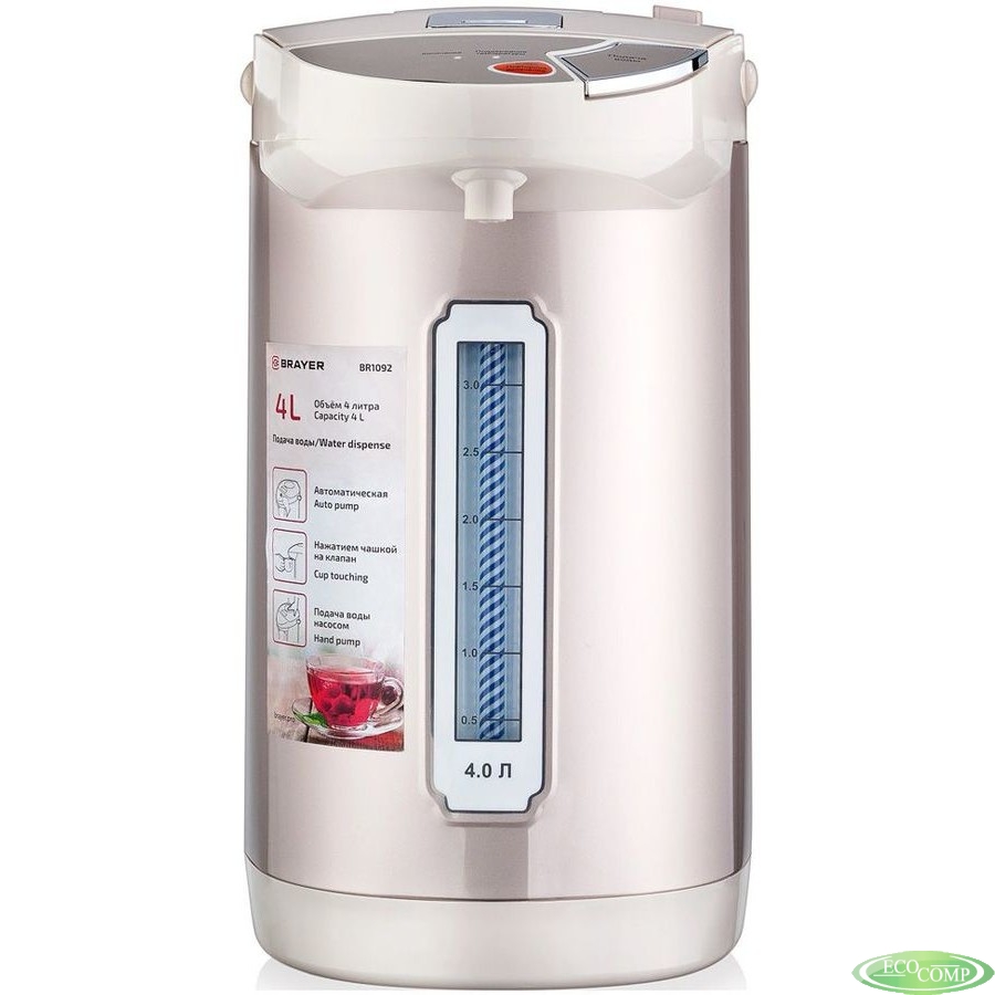 BRAYER 1092BR Термопот ,900 Вт, 4 л, 3 спос.подач.воды,поддерж.темпер,блокировка, повтор кипяч